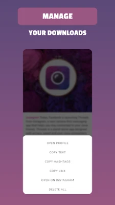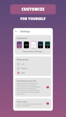 Oltre a permetterti di salvare ogni tipo di contenuto multimediale, Insget arricchisce la tua galleria con dettagli essenziali, come la descrizione originale del post e il nome dell'autore, fornendoti un contesto completo per ogni elemento che scegli di archiviare. Potrai esplorare le tue collezioni direttamente all'interno dell'applicazione, godendo di un'interfaccia moderna e personalizzabile con vari temi, incluso il classico "light". La funzione di ripubblicazione, sia su Instagram che su altre piattaforme, è fluida e immediata. Scopri la libertà di gestire i tuoi media Instagram con Insget: un'esperienza fluida, esteticamente gradevole e completamente priva di pubblicità invasive.