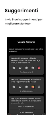 L'interfaccia di Mentoor è pensata per te: personalizza l'icona e scegli tra un tema scuro o chiaro per un ambiente di studio che rifletta il tuo stile. E la tua concentrazione è sacra: per questo, Mentoor garantisce un'esperienza totalmente priva di pubblicità invasive, permettendoti di focalizzarti solo sui tuoi obiettivi. Scopri la potenza di Mentoor gratuitamente, con quasi tutte le sue funzionalità a tua disposizione, e se desideri spingerti oltre, Mentoor Premium sblocca ulteriori capacità per un'esperienza ancora più completa. Siamo convinti che il futuro di Mentoor lo scrivano i suoi utenti: mettici alla prova con i tuoi feedback e suggerimenti, e vedrai le tue idee trasformarsi in nuove funzionalità in tempi record. Con Mentoor, pianificare, monitorare e superare gli esami non è mai stato così semplice ed efficace.