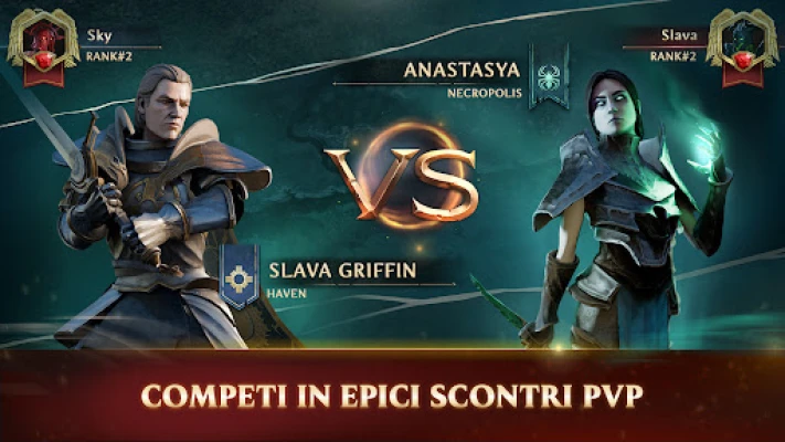 Raduna attorno a te i campioni più celebri dell'universo di Might & Magic. Fai progredire i tuoi personaggi attraverso un sistema di crescita profondo, svelando competenze esclusive e plasmando la tua strategia battaglia dopo battaglia. Amplia il tuo arsenale con un'ampia collezione di centinaia di carte: incantesimi devastanti, creature leggendarie, potenti artefatti, oltre a carte eroe e edificio che cambiano le sorti del campo di battaglia. Schierati con le storiche fazioni: difendi la gloria di Haven, risveglia le legioni oscure di Necropolis, scatena la furia primordiale di Inferno o manipola i poteri arcani dell'Accademia.