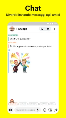 Connettiti autenticamente con i tuoi amici attraverso la messaggistica live o condividi le tue avventure co-creando Storie di gruppo. Le videochiamate diventano incontri interattivi, permettendoti di coinvolgere fino a 16 amici contemporaneamente, il tutto arricchito da divertenti Filtri e Lenti. Approfondisci i legami con i Profili Amicizia, uno spazio speciale che celebra ogni connessione unica, dove potete rivivere momenti condivisi e scoprire affascinanti punti in comune attraverso Medaglie esclusive, dai vostri gusti estetici Bitmoji alla compatibilità astrologica.